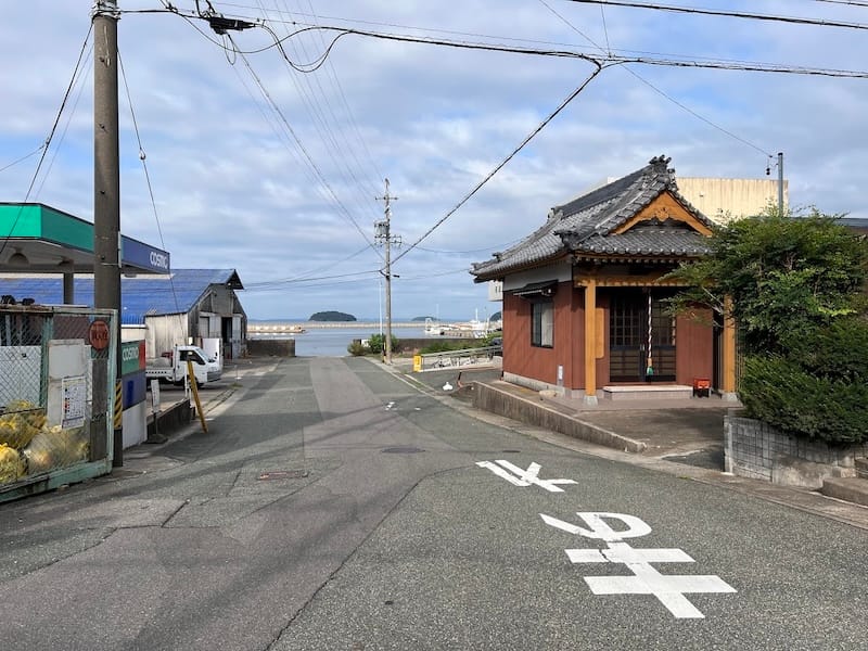 やすらぎ弘法は、西浦漁協のすぐ前に位置する、弘法大師を祀る大師堂です。隣接する住宅の願主が個人的に建立されたようで、地域の篤い信仰心を象徴しています。