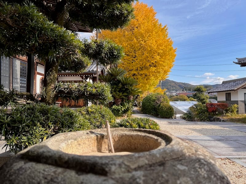 高雲寺の大イチョウは、山門、鐘堂と並んで威厳を放っています。また、寺院が斜面に建てられているため、高さ、奥行きのある立体的な構造になっています。高雲寺は、石段、石垣、白塀、鐘堂の黒、そして青い空。そこに大イチョウ、この伽藍配置が美しい寺院と言えます。
