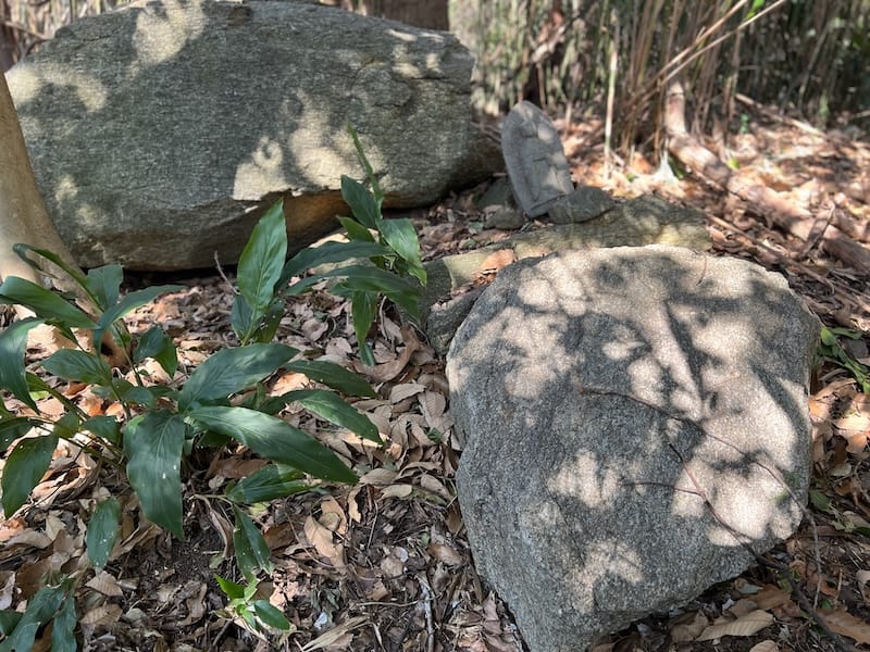 愛知県蒲郡市相楽町平林の山の麓にある平林古墳(ひらばやしこふん)は、こんもりとした森の佇まいを残す小高い場所にあります。古墳の中心部に入ると、大きなクスノキがそびえ立っています。そして、その根元には横穴式石室の奥壁とされる石材が置かれています。石材のかたわらには、小さな祠と二体の石仏がお祀りされています。祠は、平七稲荷大明神をお祀りしています。そして、石仏は観世音菩薩と地蔵菩薩です。『大塚・相楽ふるさと博物館』によると、旧暦の二の午の日には、隣地の方が僧侶に依頼して祭典供養を行っているとの記載があります。(平七稲荷大明神が祀られていることから、「二の午の日」に稲荷の神様に対して祭典供養を行なっていると推測されます)平林古墳は、古墳や史跡が多い相楽町の中でも、信仰の対象として守られてきた歴史を感じさせられます。そこには厳かで神聖な空気が流れています。蒲郡市誌 本編 – 国立国会図書館三月田古墳 – 蒲郡の旅