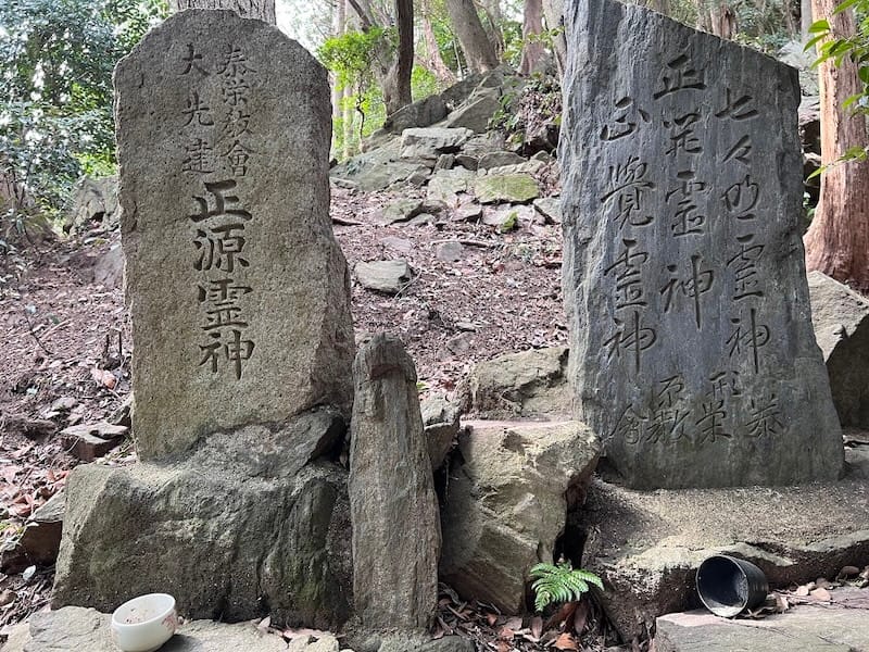 - 「奉勧請城嶽山」「明治三十年四月廿三日 登山創立」石碑