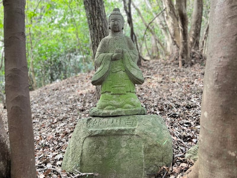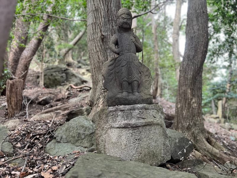 明治30年(1897年)に御津町の河原八重作ら19名が登山道沿いに16体の石像を建立した際、「奉勧請城嶽山」(城嶽山の分霊を祀る)と刻まれた石碑を建てています。一説では「城嶽山」は比叡山系の山岳信仰だと言われています。