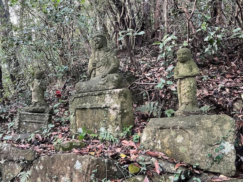 山頂には、御嶽教の主要な三柱の神(御嶽大神:大己貴大神・国常立尊・少彦名大神)が祀られています。以下では、登山口から御堂山山頂、観音堂へと巡る周回コース上の石仏や石碑を順番にご紹介します。