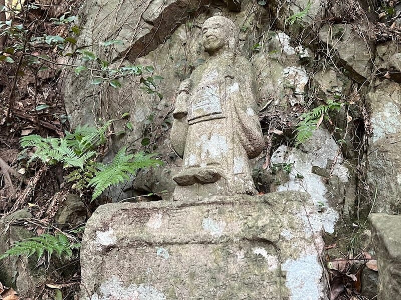 御嶽講の石像は、御堂山の登山道にあり石像や記念碑が点在しています。