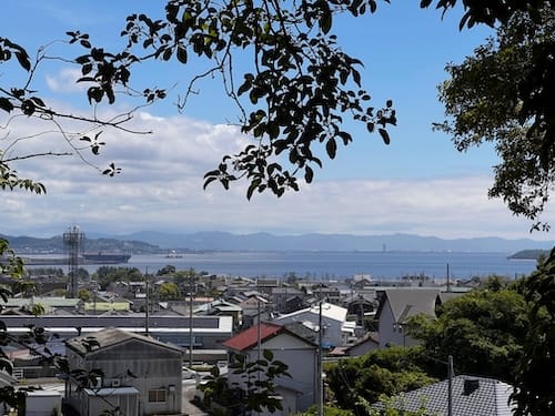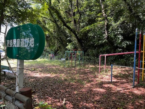 この遊び場は高台にあるため、入口付近からは美しい三河湾の眺望が楽しめ、「鎮守の森の遊び場」といった趣です。