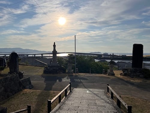 この広場は高台に位置しているため、三河湾の素晴らしい眺望があり、遠く渥美半島まで見渡すことができます。