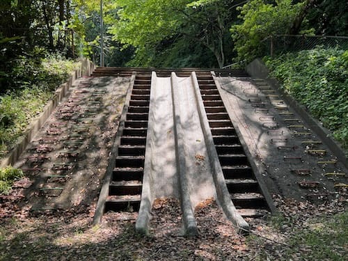 坂道をのぼりながら、交通利便性が政策的に求められる現代に思いを馳せる場所になっている……そんな遊園地でした。