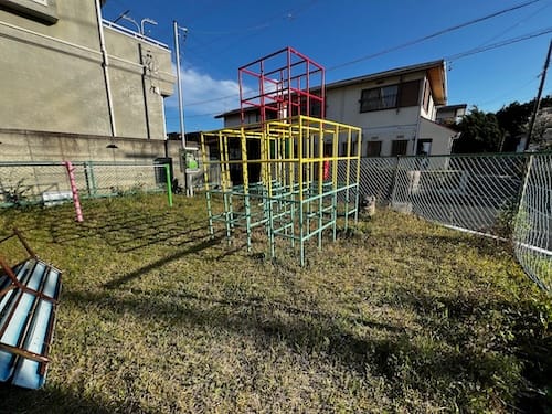 - 遊具 すべり台、ブランコ、鉄棒、ジャングルジム、砂場