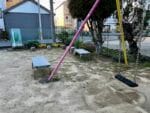 - 遊具 すべり台、ブランコ、回転ジャングルジム、球形ジャングルジム、スプリング遊具(バンビー号)、砂場