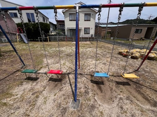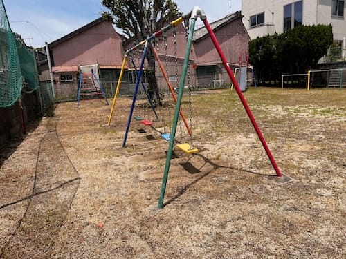 - 遊具 ブランコ、すべり台、鉄棒、アーチラダー、砂場