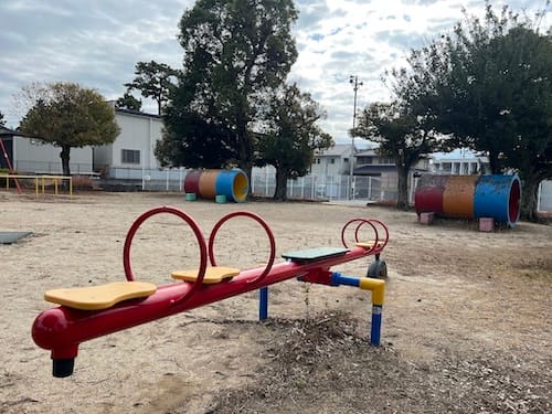 - 遊具 複合遊具、ブランコ、シーソー、土管、砂場