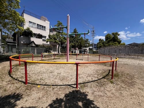 - 遊具 複合遊具、すべり台、ブランコ、鉄棒