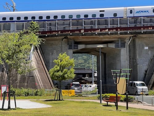 新幹線の高架沿いという現代的なロケーションに、地域の歴史と新しい遊び場を繋ぐ場所として整備されました。