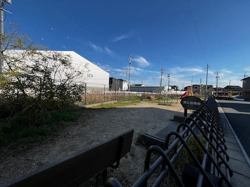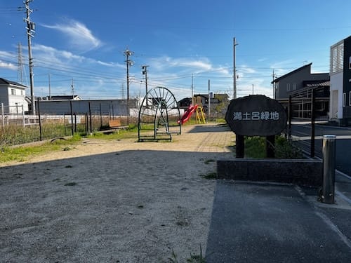 蒲郡市豊岡町満土呂(まんどろ)の、力川の西側に位置する「満土呂緑地」は、平成24年(2012年)に誕生した0.03ヘクタールのコンパクトな公園です。宅地造成の過程で生まれた三角形の余剰地を活用し、憩いの場となっています。