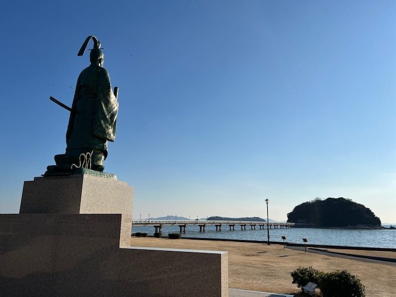 俊成苑で圧倒的な存在感を放つ俊成公の銅像は、1991年(平成3年)に日本芸術院会員の彫刻家・富永直樹氏によって制作されました。2007年の俊成苑開苑時には、修復作業を経て現在の荘厳な姿となり、今も三河湾を見守り続けています。