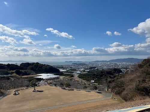 堰堤の上に立つと、眼下には蒲郡の市街地が広がり、その向こうには西浦半島から知多半島までを一望できる、市内屈指のパノラマビューを楽しめます。