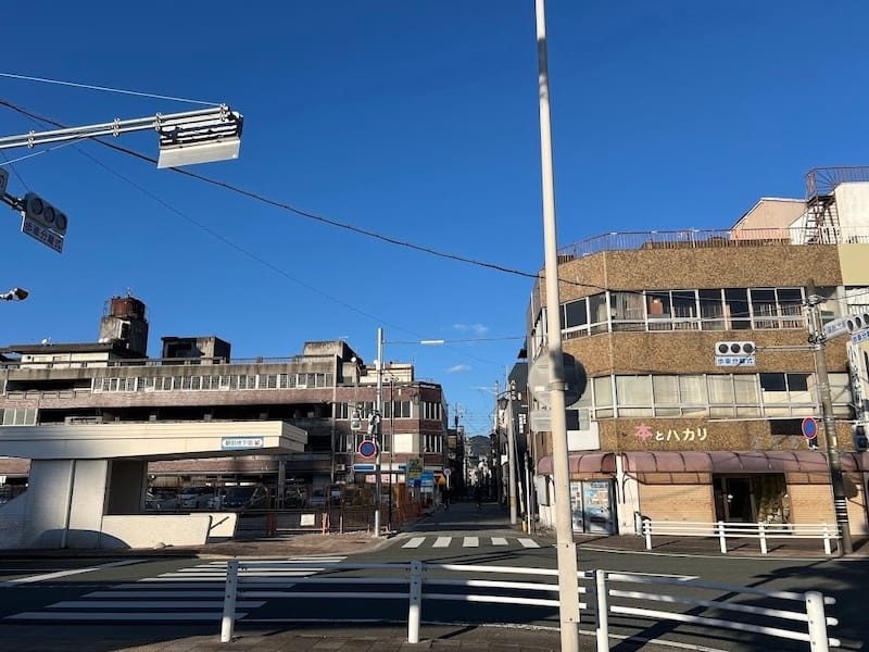 5. 三谷キッチン千賀前横断歩道:研二・太田・朝倉の3人が「ビートルズ風」に歩く印象的なシーン。劇中の弘法大師像は演出上向きが異なりますが、現場の空気感はそのままでした。(Googleストリートビュー)