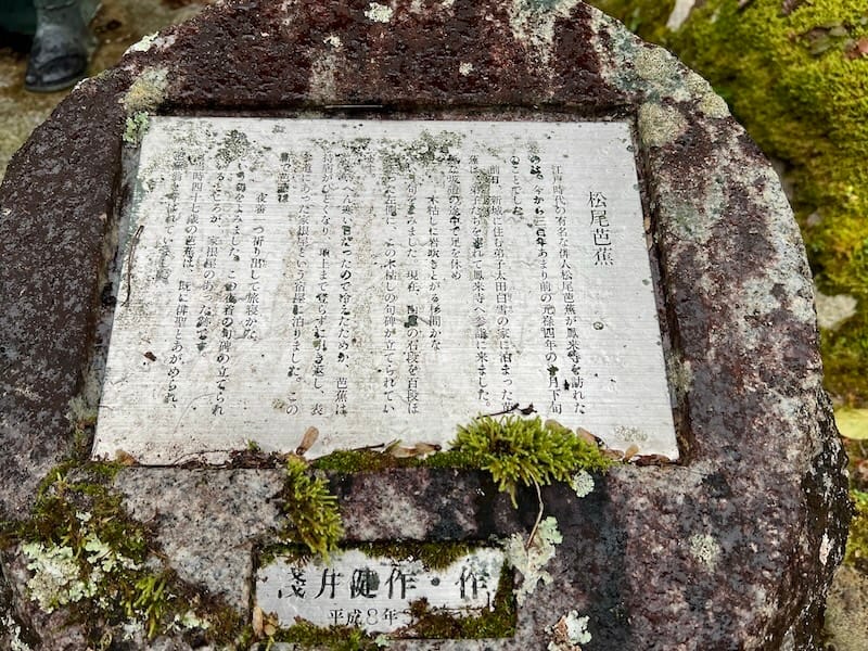 元禄4年(1691年)、俳聖・松尾芭蕉は新城から弟子たちを伴い、鳳来寺を参詣しました。山門前では「木枯らしに岩吹きとがる杉間かな」を、宿泊した「屋根屋」では「夜着一つ祈り出して旅寝かな」という句を詠みました。
