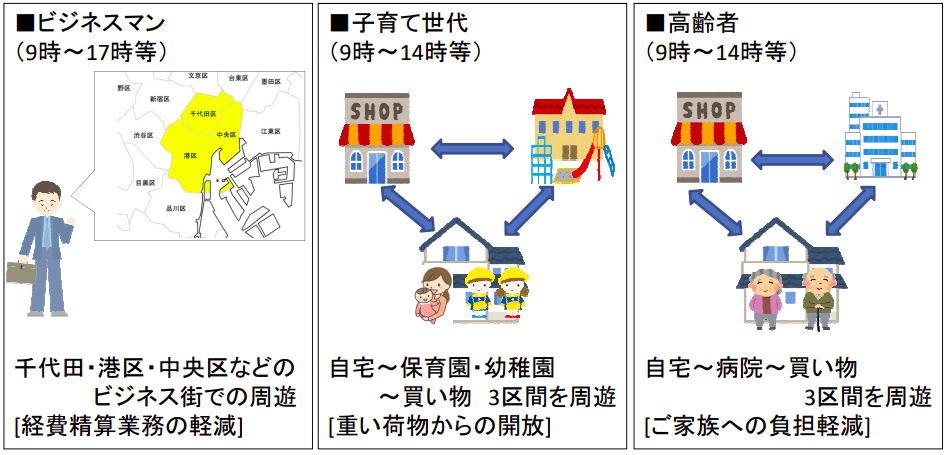 「ビジネスマン等のヘビーユーザーの更なる利用増及び定期利用による新たな顧客の獲得。高齢者や子育て世代が運賃を気にすることなく、日常の足として『ドアtoドア』のタクシーの利用が可能になる」を期待できる効果としています。