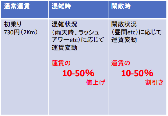 これは要するに暇な時には運賃を下げて、忙しい時には運賃を上げるシステムです。タクシー運転手からの反対の声が多い理由の根源は、私たちの賃金が歩合給制だからです。繁忙時だけ仕事をやっているわけでもないので、値下げということに対して反応するのはしかたないことだと思います。